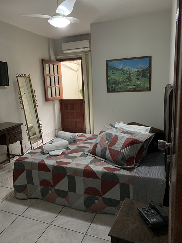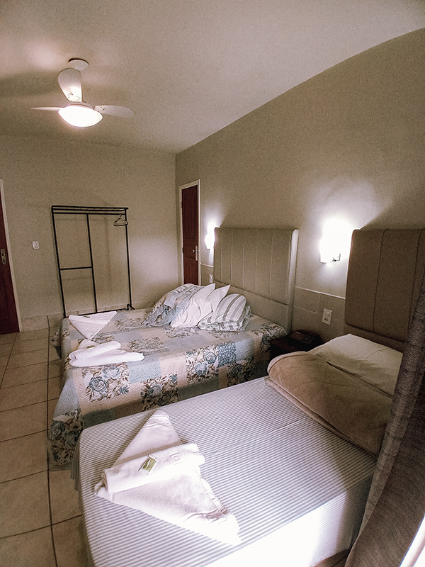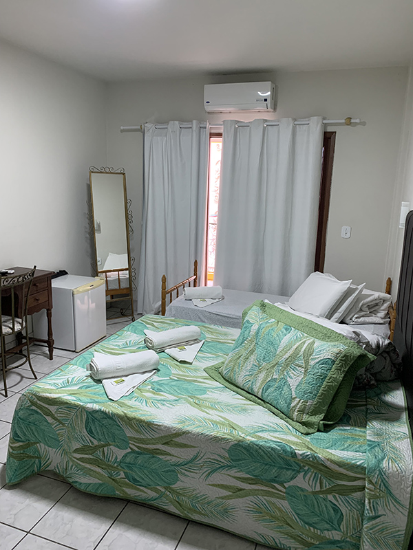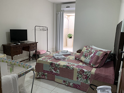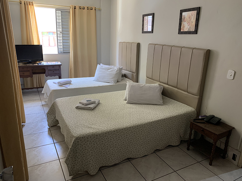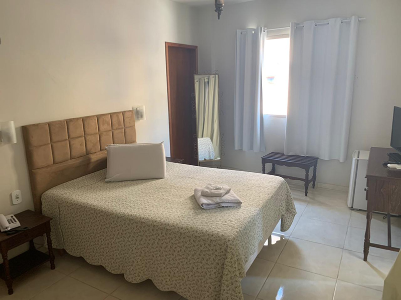 Dispomos de apartamentos amplos, equipados com frigobar, tv, telefone e banheiro privativo.
